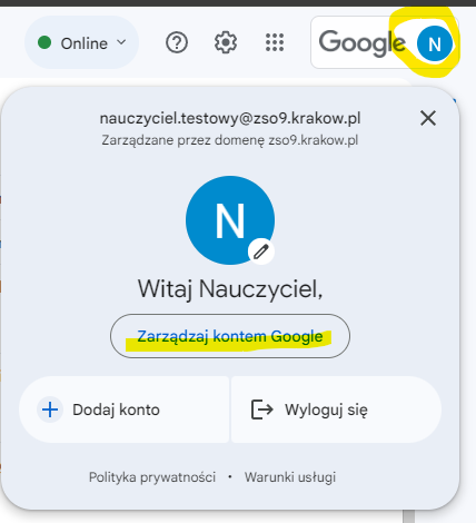 Google: naczyciel.testowy@zso9.krakow.pl