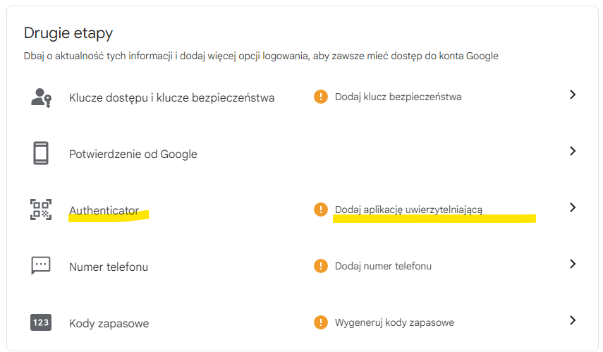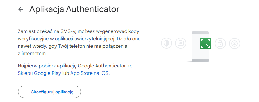 Włączanie weryfikacji przez aplikację Google Authenticator